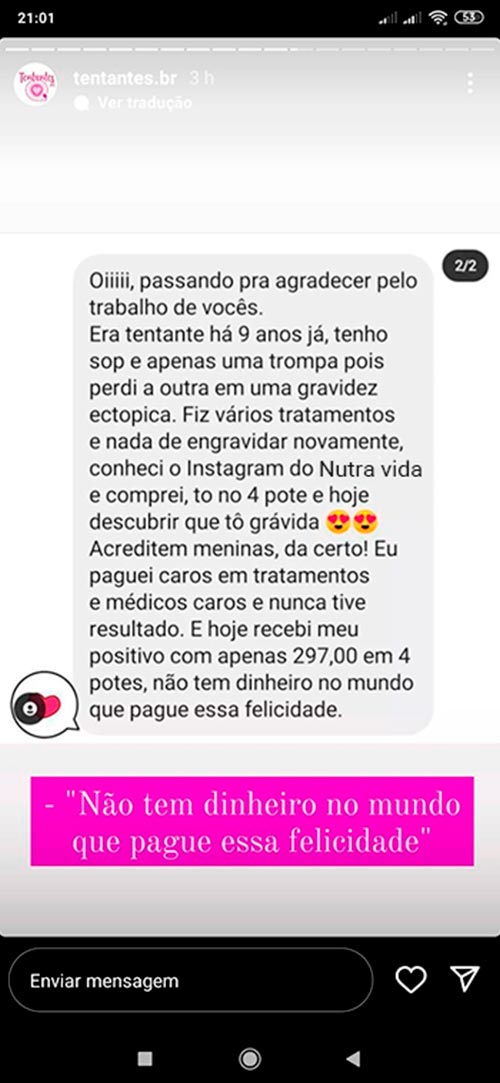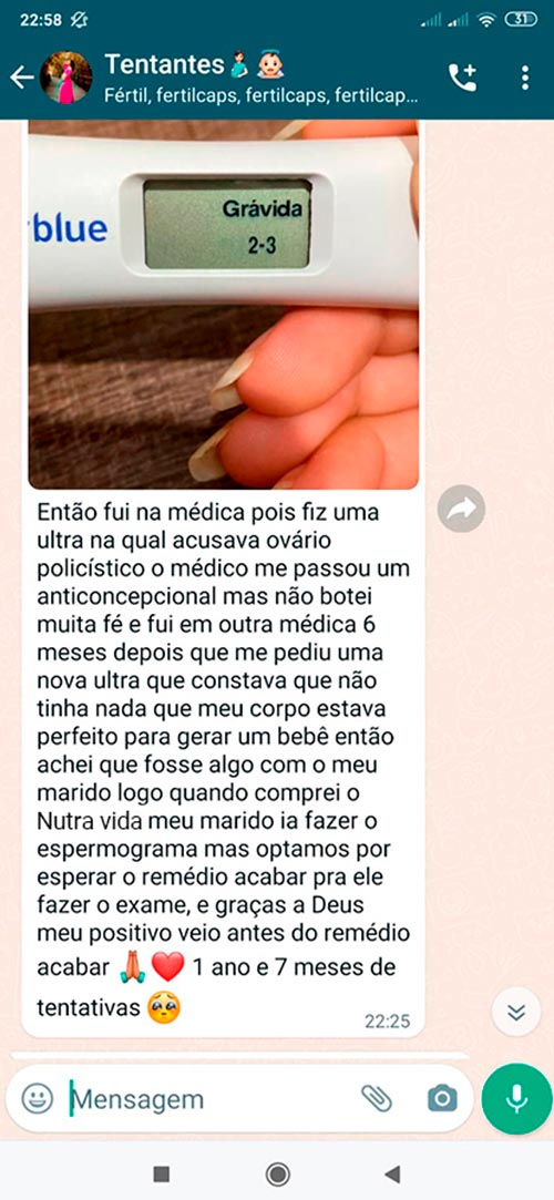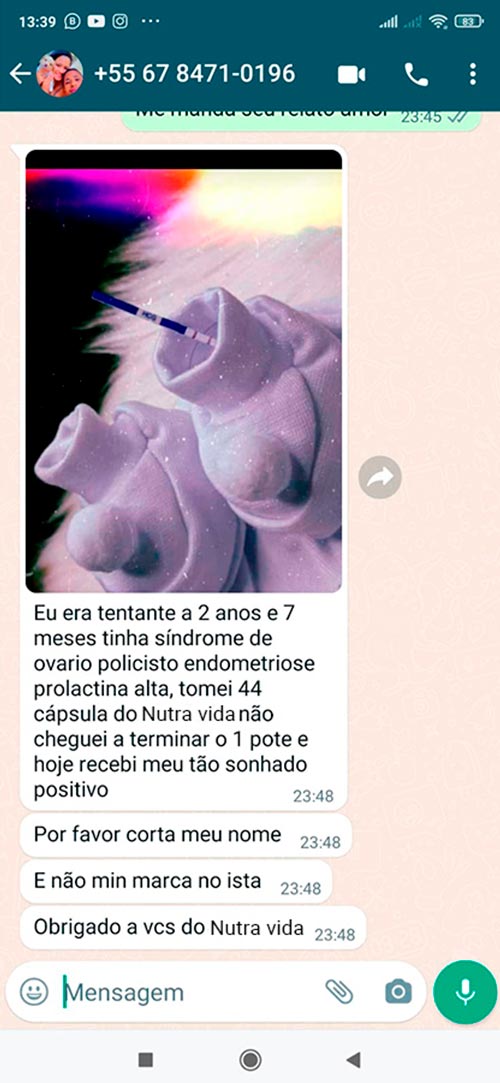 Sonho da maternidade mais perto depois de algumas semanas com Nutra Vida.